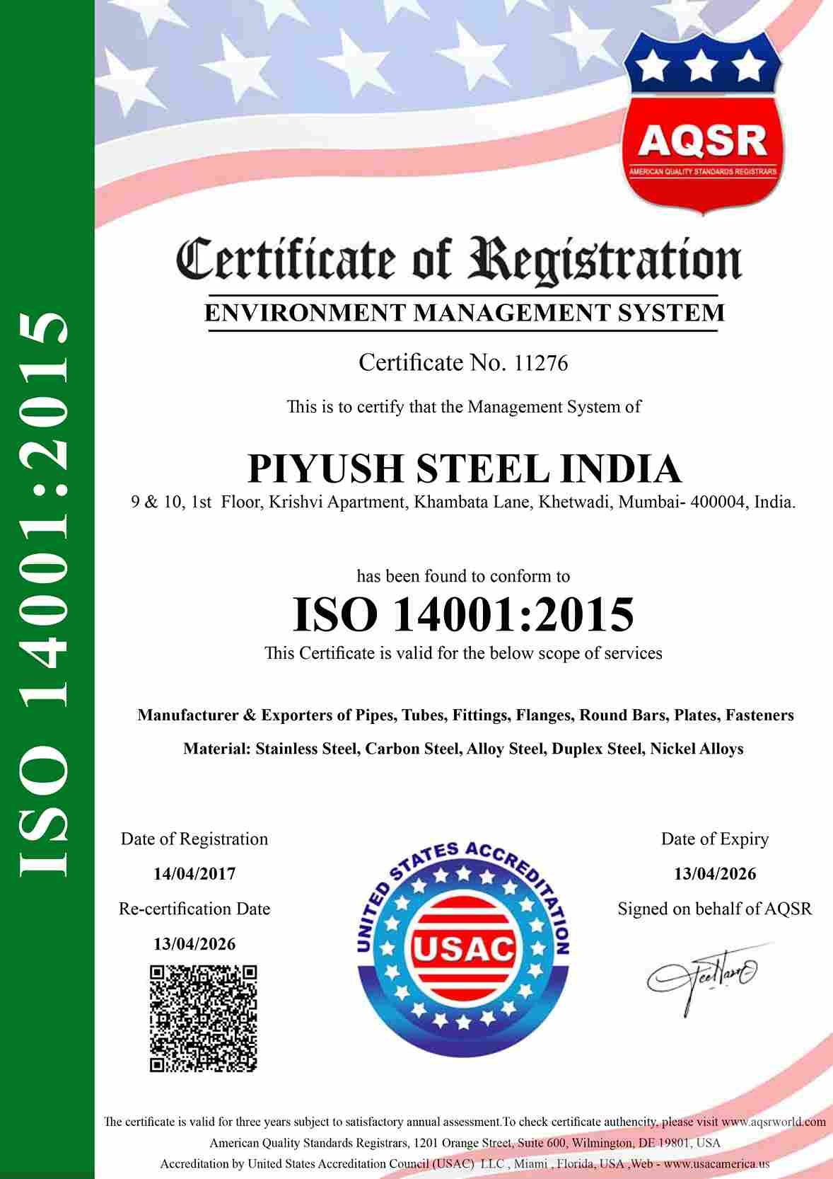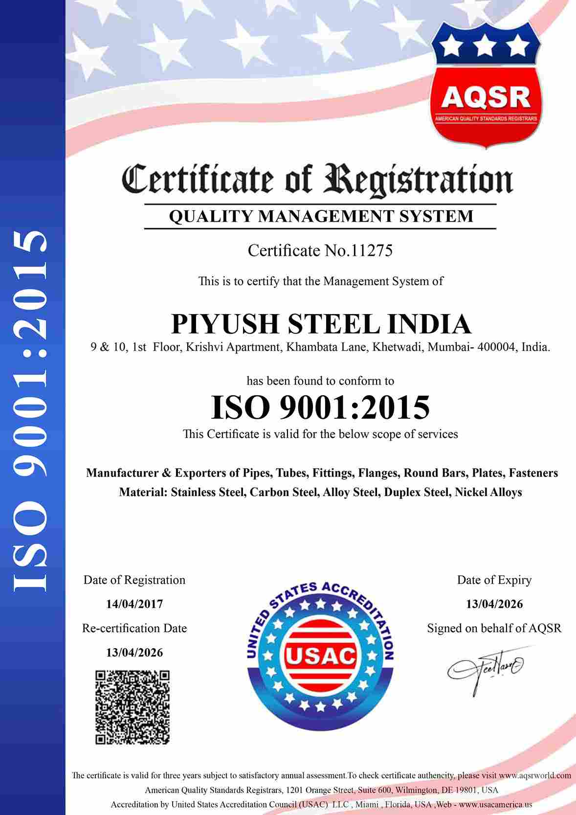 With Mill And Third Party Test Certificate.